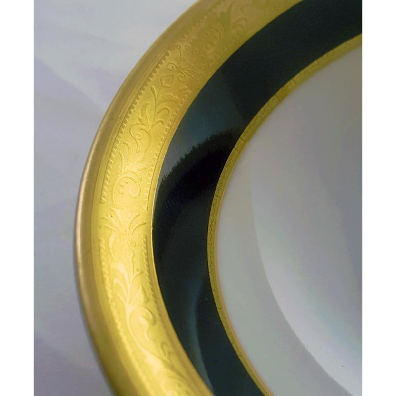 The Phoenicia pattern dinnerware features a Ohio State Seal in 24kt. gold and a bold cobalt blue rim with a 24kt. two tone etched gold band along the outer edge and thin gold band along the inner rim. The fine china serving bowl measures 9 1/8" wide. Non-microwavable. Hand wash.